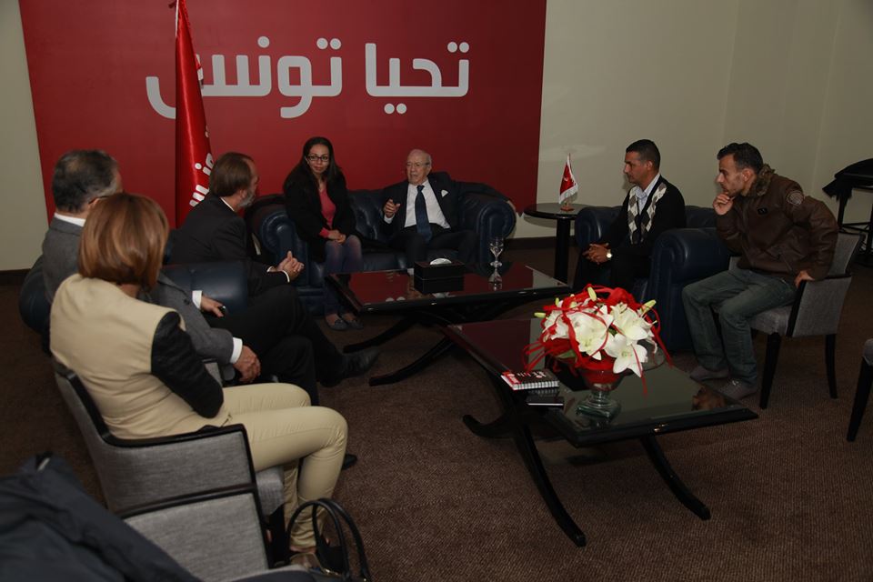 استقبل اليوم الباجي قائد السبسي زعيم حزب نداء تونس والمترشح للانتخابات الرئاسية ممثلي اتحاد اصحاب الشهادات المعطلين عن العمل بمقر الحزب بالبحيرة .