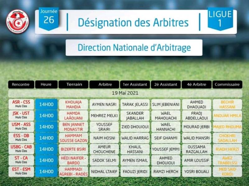 أعلنت الادارة الوطنية للتحكيم في الجامعة التونسية لكرة القدم عن تعيين الحكم صادق السالمي لادارة مباراة الملعب التونسي ضد النادي الإفريقي لحساب الجولة الاخيرة من البطولة والتي ستكون حاسمة في صراع النزول.