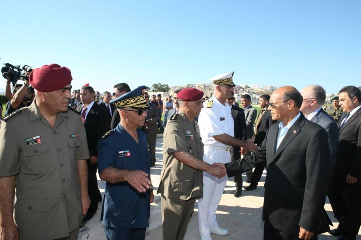 ووقف كل من رئيس الجمهورية محمد المنصف المرزوقى ورئيس الحكومة الموقتة مهدى جمعة ورئيس المجلس الوطنى التاسيسى مصطفى بن جعفر مصحوبين بوزير الدفاع الوطنى غازى الجريبى فى اجلال لارواح شهداء الوطن والواجب على أنغام النشيد الوطنى.