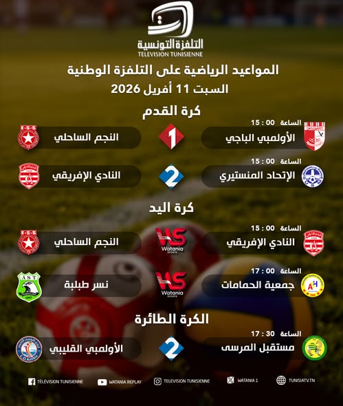 تلعب اليوم السبت 11 أفريل 2026 الدفعة الثانية من مباريات الجولة 25 من الرابطة الاولى .وسيكون البث التلفزي كما يلي: