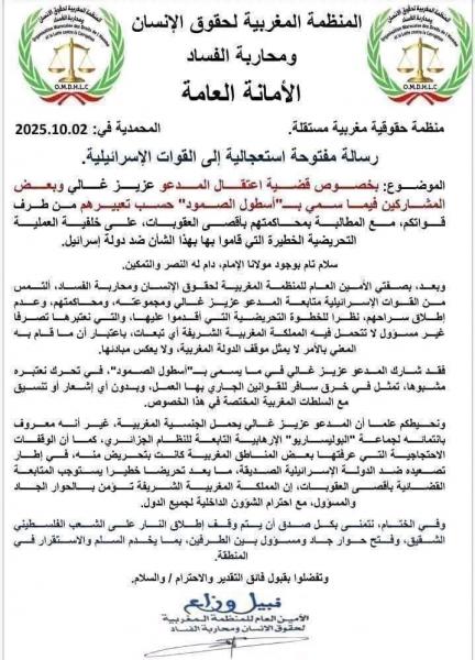 تواصل المنظمة المغربية لحقوق الإنسان ومكافحة الفساد، التي تدّعي الدفاع عن حقوق الإنسان ومحاربة الفساد، إثارة الجدل من خلال مواقفها المثيرة للريبة، والتي تخدم بشكل مباشر مصالح الكيان الصهيوني أو تتعارض مع المبادئ الأساسية لحقوق الإنسان والعدالة الاجتماعية.