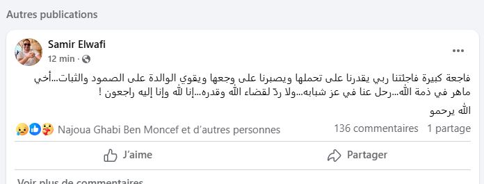 اعلن الاعلامي سمير الوافي منذ قليل على صفحته بالفيس بوك عن وقاة شقيقه ماهر و هو في عز شبابه