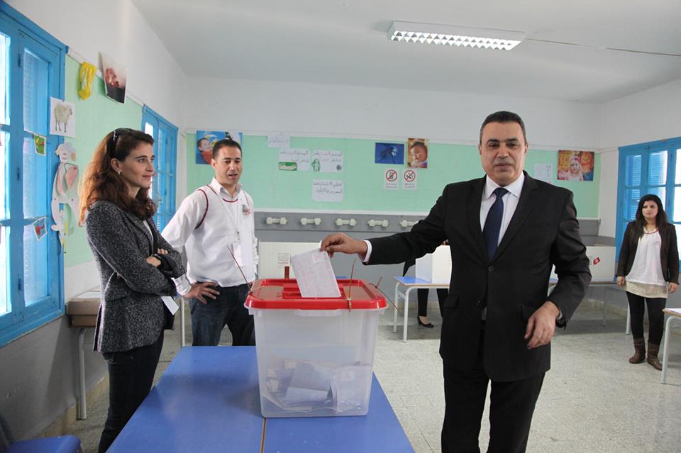 أدى صباح اليوم رئيس الحكومة مهدي جمعة واجبه الانتخابي بمركز الاقتراع بقرطاج مرفوقا بزوجته .