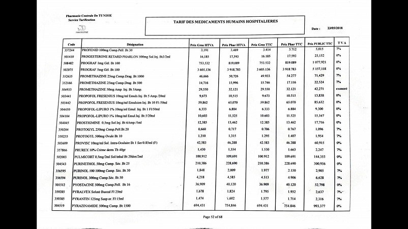 وقالت صاحبة الصيدلية ان الدواء pyostacine مفقود منذ أشهر وانها قامت بالبحث عنه لتزويد حرفائها وتوفير الدواء لهم من تلقاء نفسها وللتخفيف من معاناتهم ، ومثلما تظهره الفواتير فإن عملية شراء الادوية المفقودة كانت بسعر جديد ولا دخل للصيدلية في اي تغيير في الاسعار .