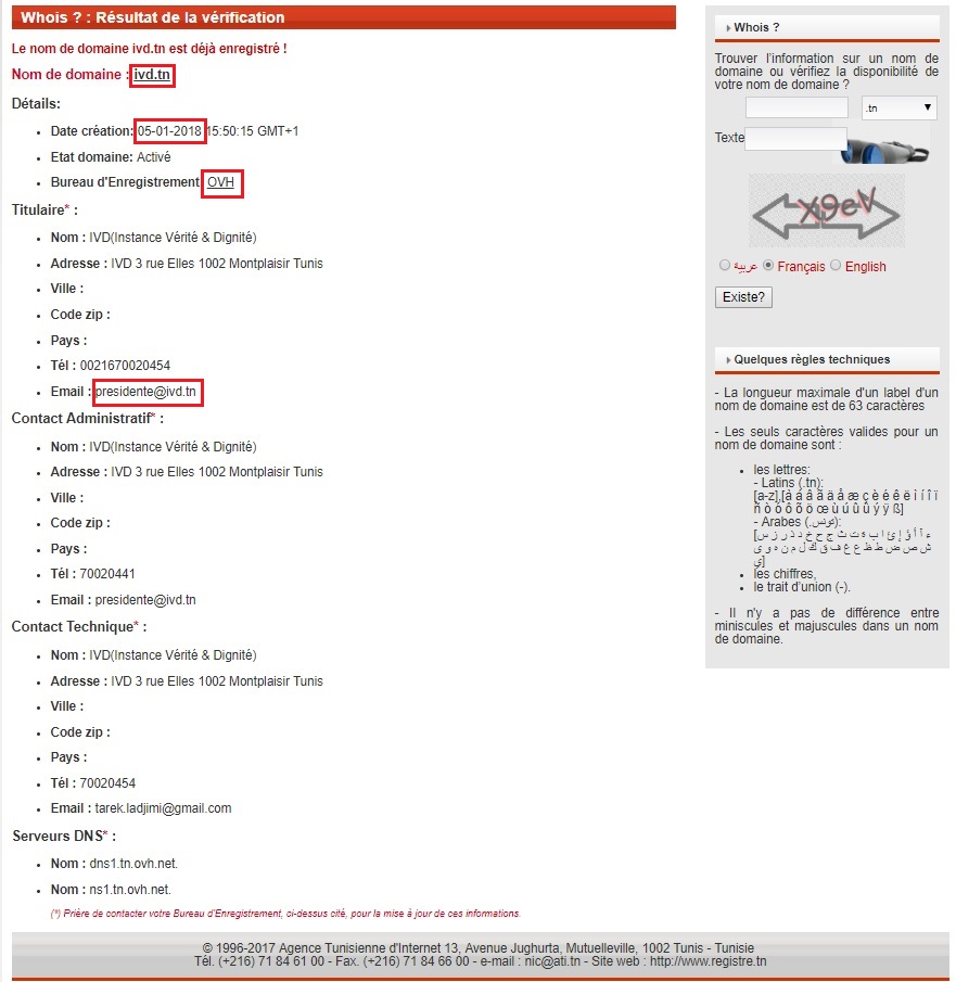 لقد قامت هيئة الحقيقة والكرامة باقتناء مساحات تخزين المعلومات الإلكترونية في فرنسا وذلك منذ 5 جانفي 2018، وهي تقوم بتخزين معطيات وطنية لدى شركة فرنسية، وفي هذا مخالفة واضحة للفصل 47، 52 و 90 من القانون الأساسي 63 لسنة 2004 لحماية المعطيات الشخصية."