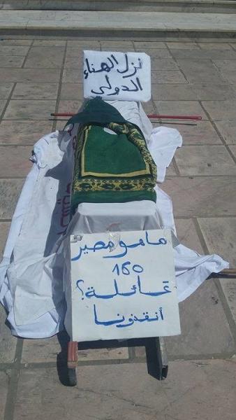 وخلال الوقفة الاحتجاجية تعمد أحد المحتجين الى دخول النزل وألقى دمية من الطوابق العلوية مما تسبب في ذعر المارة الذين ظنوا أنه شخص قد أقدم على الانتحار.
