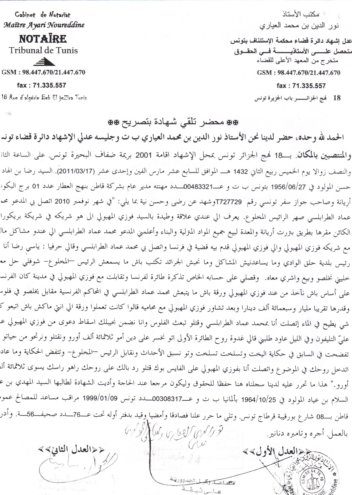 وفيما يلي وثيقة الاعتراف :