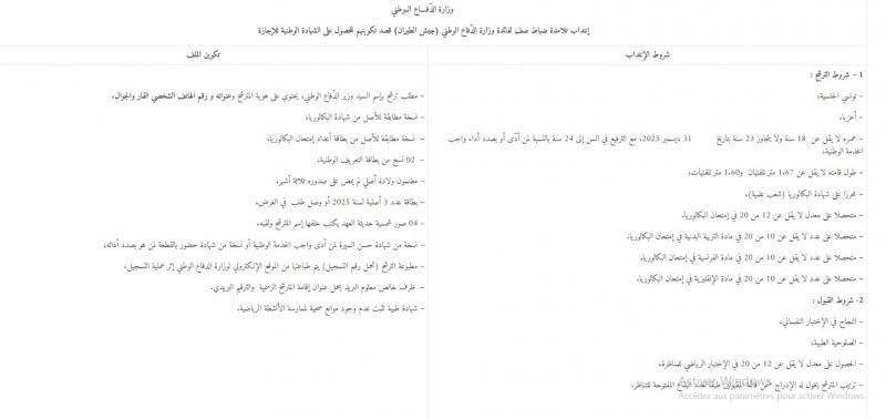 فتحت وزارة الدفاع الوطني بداية من يوم 14 جويلية 2025، باب التسجيل للترشح لمناظرة انتداب تلامذة ضباط صف لفائدة جيش الطيران قصد تكوينهم للحصول على الشهادة الوطنية للإجازة