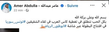 يعلّق عليها عامر عبد الله :موعد مباراة تونس و سوريا و القناة الناقلة